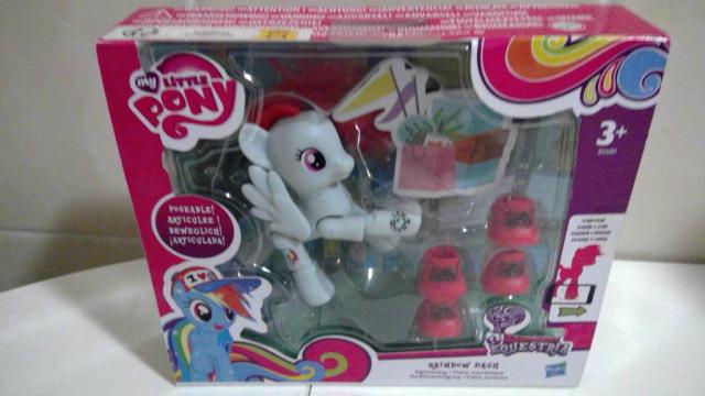 Dès 4 ans. Tiré du dessin animé My little Pony, figurine Rainbow Dash 7 cm (de tête aux pattes), articulé, avec accessoires les petites chaussures