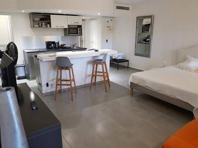 Studio de 40 m2 situé au rez-de-chaussé composé d'une entrée, d'un séjour donnant sur une terrasse couverte, d'une cuisine équipée, d'une salle de bain et d'un WC.