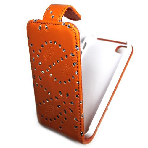 Housse / Etui à rabat Façon CUIR ORANGE avec Brillants incrustés pour Apple iPhone 4S